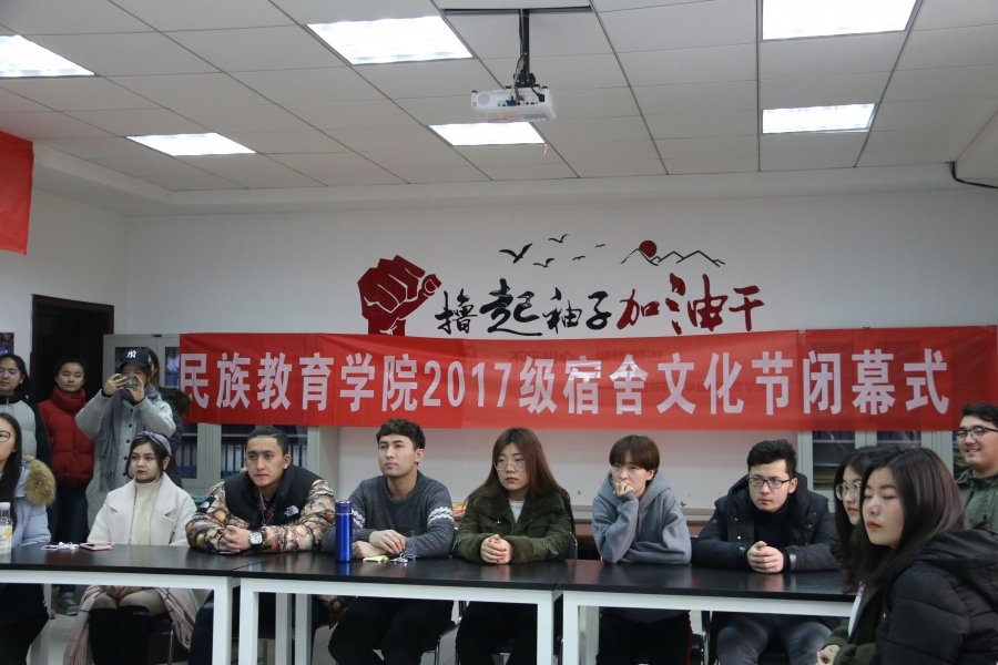 颁奖环节后,学生会主席发言,他说,宿舍就是我们的第二个家,同时对同学们为营造温馨宿舍环境的热情给予赞扬。最后,我院辅导员热依木老师总结讲话,他向组织本次寝室文化节的学生会成员及参加这次文化节的闭幕式的老师和同学们表示由衷地感谢。还表示从这次文化节活动中,他看到了每个人的付出,也看到了同学们展示的各民族的文化以及特色食品,并希望同学生们在今后的学习和校园生活中,要本着“创新、协调、绿色、开放、共享”的发展理念,学习和践行社会主义核心价值观,不断体验和传承中华文化,陶冶情操,塑造灵魂,再接再厉,继续发扬民教院的风采,健康成长成才。