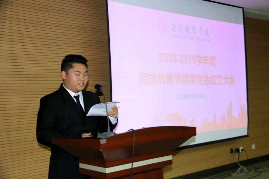 大会在振奋人心的共青团团歌的奏响下正式拉开了帷幕。民族教育学院党总支副书记,副院长窦文阳宣读了《关于民族教育学院2018—2019学年度学生会干部的任命决定》,任命阿如罕等68名同学为新一届学生会干部。