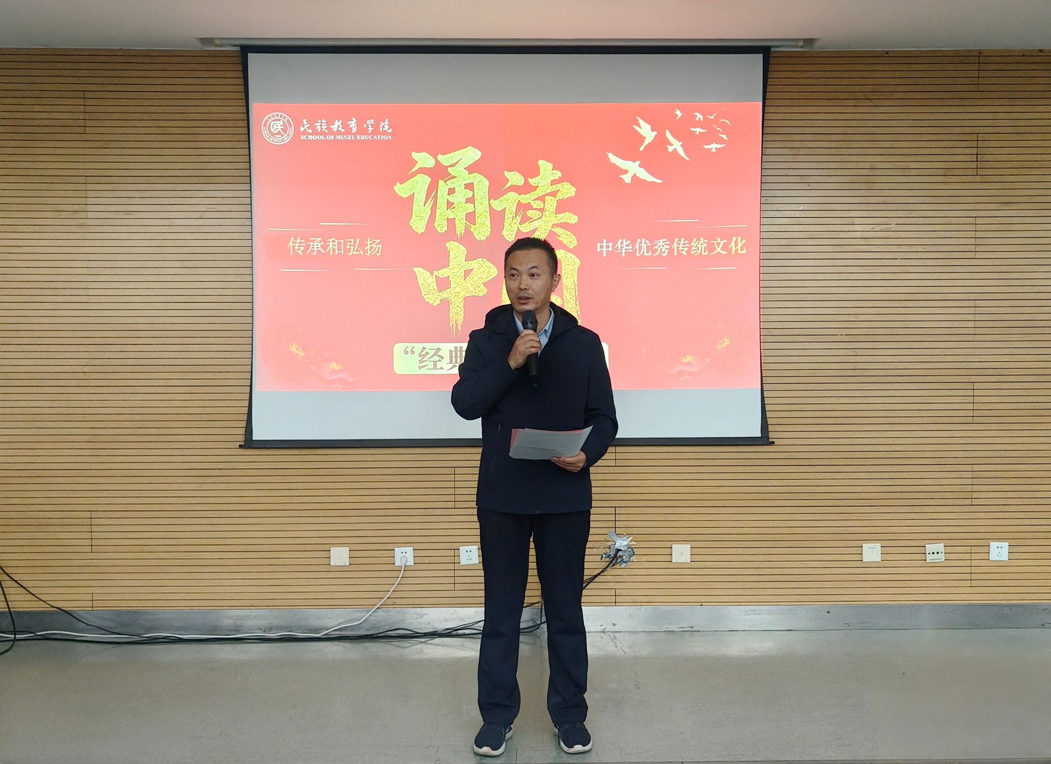 诵读经典,声动华夏传薪火;礼赞盛世,青春筑梦谱新篇。11月26日晚,民族教育学院在雁塔校区崇鋈楼二层闻道堂顺利举办2025年“诵读中国”经典诵读大赛。本次大赛以“传承和弘扬中华优秀传统文化”为主题,旨在引领青年学子在诵读经典中感悟中华文化的深厚底蕴与时代精神,增强文化自信,凝聚奋进力量。学院党总支书记闫文浩,党总支副书记高冬,新疆内派教师阿依努尔,教师代表卢静、唐涛、乔露,专职辅导员米尔微提,兼职辅导员刘江珊与学院全体学生参加本次活动。